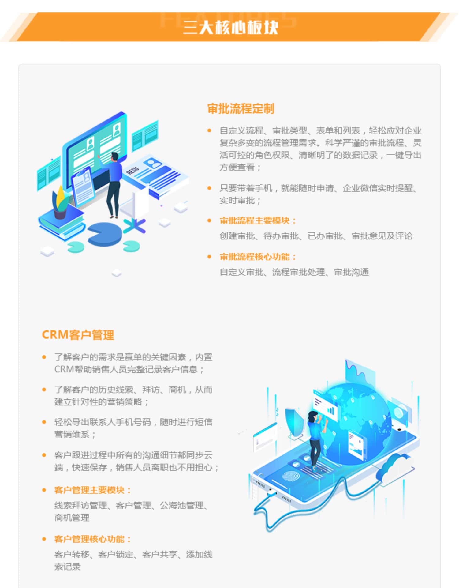 自定义流程、审批类型、表单和列表,轻松应对企业0复杂多变的流程管理需求。科学严谨的审批流程、灵活可控的角色权限、清明了的数据记录,一键导出方便查看;