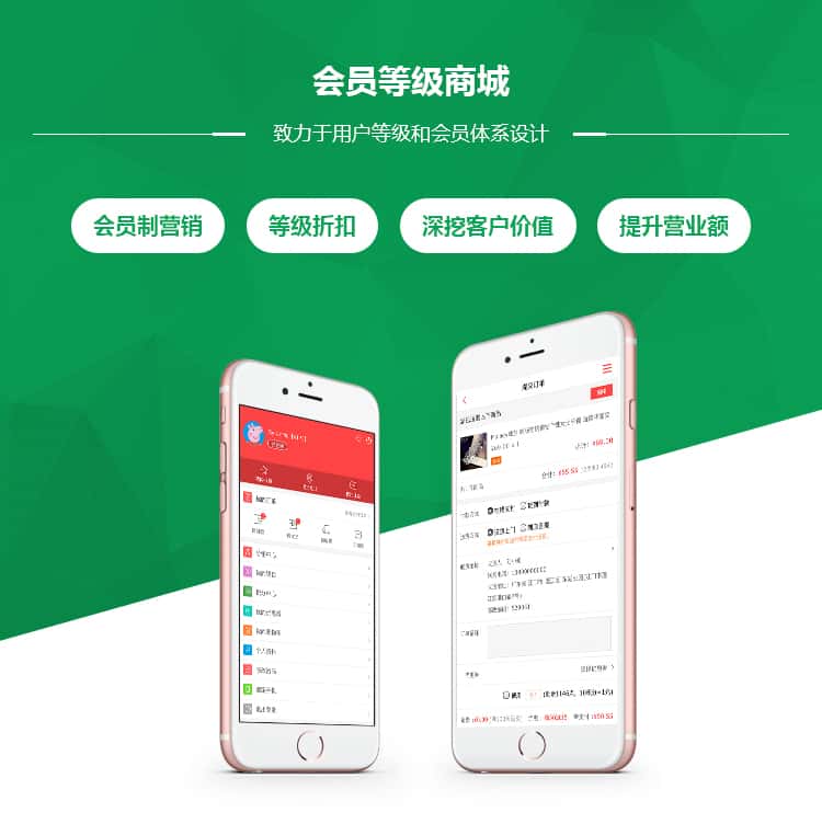 会员等级商城是一款基于微信开发、致力于会员等级折扣的商城系统。企业以会员制形式发展顾客,利用合理的会员积分和等级制度,并提供差别化的优惠折扣,提高顾客忠诚度和回头率,增加企业长期利润。